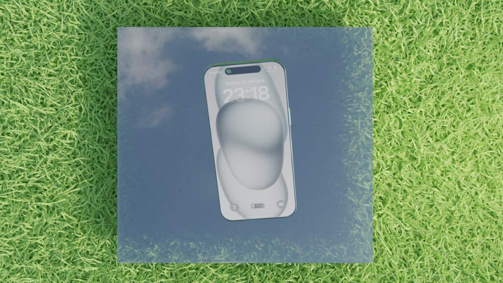 Free for personal use original smartphone mockup for photoshop. Get more information on https://morepsd.com/2024/06/iphone-15-mockup-on-glass-plate-and-grass/